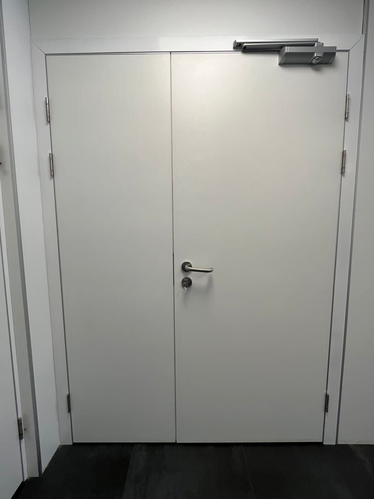 Алюминиевая телескопическая коробка с фрезерованием петель толщиной 3 мм из нержавеющей стали и двумя подшипниками. Три петли на коробке. Жесткий конструкционный профиль коробки. Окраска порошковой краской в цвет дверного полотна