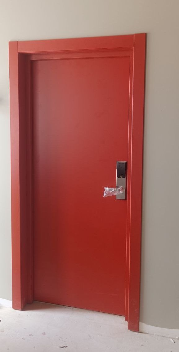 Дверь звукоизолирующая 32дБ, входная в номер. Имеет телескопическую коробку и наличник. Скрытый доводчик и электронный замок. Три петли из нержавеющей стали на подшипниках и автоматический порог в комплекте.